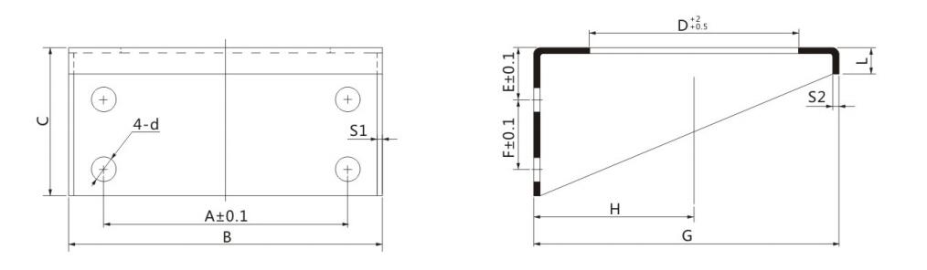 | Modelo | A | B | C | D | E | F | G | S1 | S2 | d(±0,22) | L | H | Tipo de acumulador compuesto |